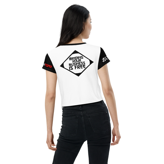 Women's HeyyyyTony 'Minding Your Business' All Over Print Crop T-shirt
